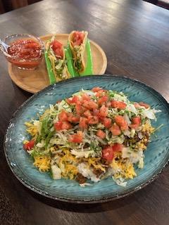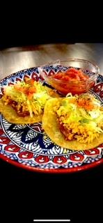 当店オススメのタコス🌮 サルサソースもオリジナルで、辛めのHOT or辛さ控えめのマイルド選べます😋