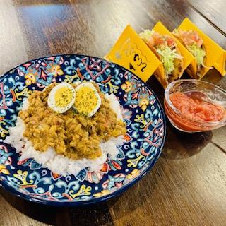 キーマカレーとタコスのセットメニュー👆👆 すべてホームメイドしてます💁♀️ スープ、ドリンク付 ¥1000