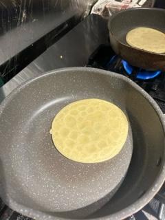 タコスの皮も1枚1枚焼いてま〜す☝️ オーダー頂いてから揚げます💁♀️ 出来たてタコスは最高に美味しいですよ〜🌮 4ピース ¥1000