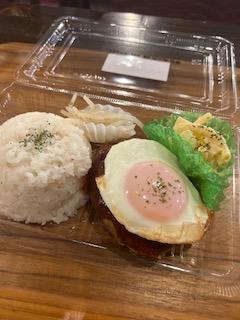 ロコモコのテイクアウト☝️ 赤ワインを加えて作るオリジナルソース、ハンバーグと合ってて美味しいですよ🤭